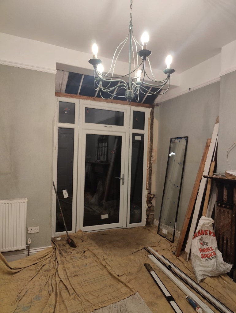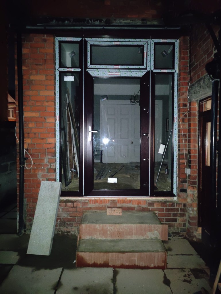 While we are away in the Vaterland, our friendly builders made great progress building just three steps (which will support a ramp) and a brand new, full-length door to our living room. Pádraig will be able to get straight into the room, without the bother of the slow and complex lift he has been using up to now.