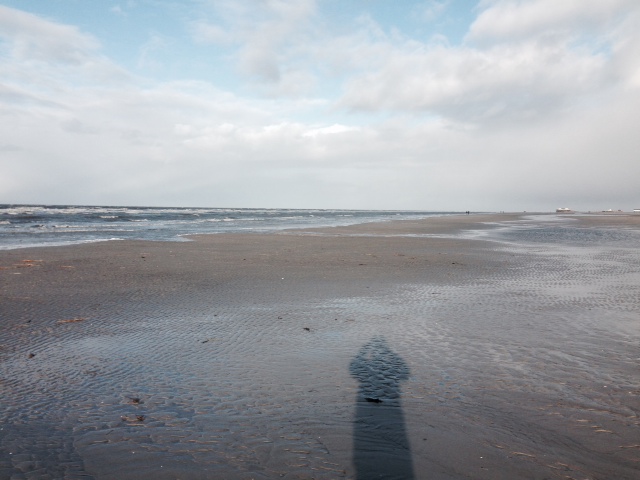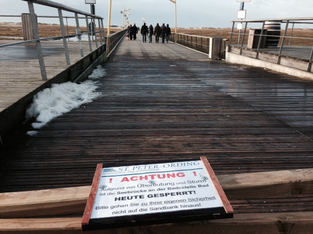 Yesterday, Pat and I went to the beach in St. Peter-Ording, just a few kilometers (or miles:) from here. And there, the Germans showed their real face: Although security had safely cordoned of the foot-bridge leading out towards the beach and the sea, they were climbing across the barrier, tearing it down in the process. Lenin once said about the Germans that if they were to start a revolution on a platform in a train station, they would buy platform-tickets (Bahnsteigkarten) to get there. Well, Lenin – guess what: Germany and the Germans have changed. Next thing will be that they’re going to ignore the little red man in the traffic lights. The end of the world as we know it. Anarchy!