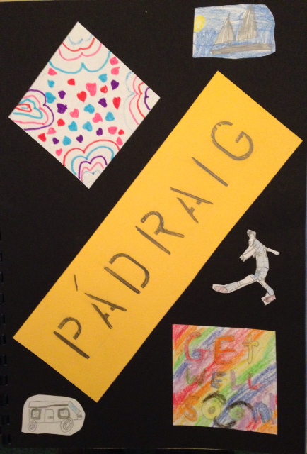 Think about it. This most beautiful, hand made present with the prayers and the jokes from Ryan, Shannon, Laoise, Lorcan, Ross, Caolán, Aod, Andrew, Molly, Saoirse, Cormac, Caillon, Leah, Conor, Aísling, Rónán, Jude, Jack, and Olwyh, from 8, 9 and 10 year old kids who never met Pádraig in person, is an incredible outpour of love and compassion from kids far up in beautiful Donegal. I will show this booklet to Pádraig tomorrow and I am sure, it will give him a big big boost of energy and laughter that will make him better! Absolutely!