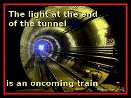Unknown“The light at the end of the tunnel is the light of an oncoming train.” One of my favourite cynical jokes.