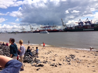sea. So what do Hamburgers do? They get a few tons of sand and strategically place them on the banks of the river Elbe. Sounds ok until you think again and realize what happens if you create a beach on the banks of the river leading into Europe’s second biggest sea port: It gets cramped – huge container ships fight over space with weekend beach goers. The overall effect is, as one of my family members said, that you feel like going on an excursion into Dublin port and decide to take out your togs and throw yourself into the water. Definitely something you would not do in Dublin – what what’s the choice for poor Hamburgers?