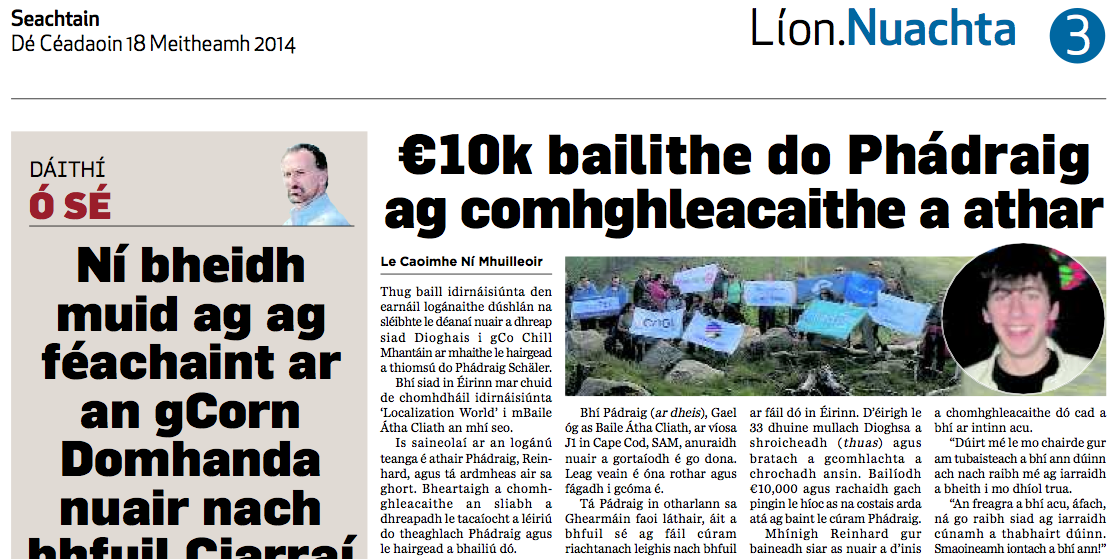 I wonder – was this the only newspaper and general media coverage Localization World got in Ireland? – And it’s in Irish!!!