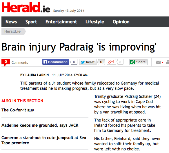 The Evening Herald had a short article on Pádraig on 11 July 2014