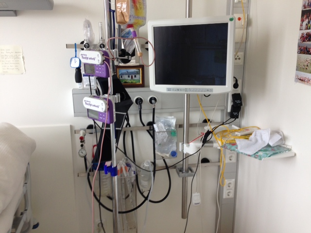 Since yesterday, Pádraig is no longer on any monitoring equipment! No ECG, no more oxygen saturation levels taken round the clock! It is so so strange to see Pádraig without cables hanging on to him around the clock!