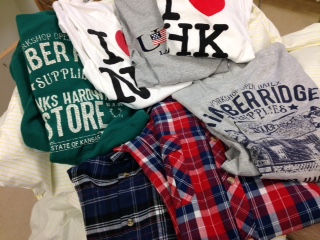 One delivered an incredible package with a year’s supply of sweat shirts and t-shirts all really nicely and professionally prepared for wear in a hospital. Really easy in and out, with the back open, but held together at the back with velcro and a tie. It’s so well done, I thought this is something that could be offered as a really great product to people in hospital who are sick and tired of hospital gowns, but can’t yet quite manage to pull t-shirts or sweat shirts over their head and over both of their arms.