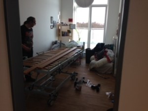 It took more than three hours and three people today to dismantle the old bed and set up the new one. The exchange of the lifter (for a week, just to see how it would work), got almost lost in an afternoon of people coming and going. Carer in the morning, followed by the physio, a short brake, speech therapy, and then bed and lifter exchange, before the late afternoon visit by carers let the day pass by in a flash.