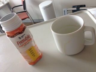 IMG_0411I am convinced that soon Pádraig will be able to eat and drink enough to keep him going. Even if he didn’t eat the semolina, soups, pureed potatoes, meats, veggies, yoghurts – he would just need to eat/drink five 200ml really tasty Fresubinis to get his calories.