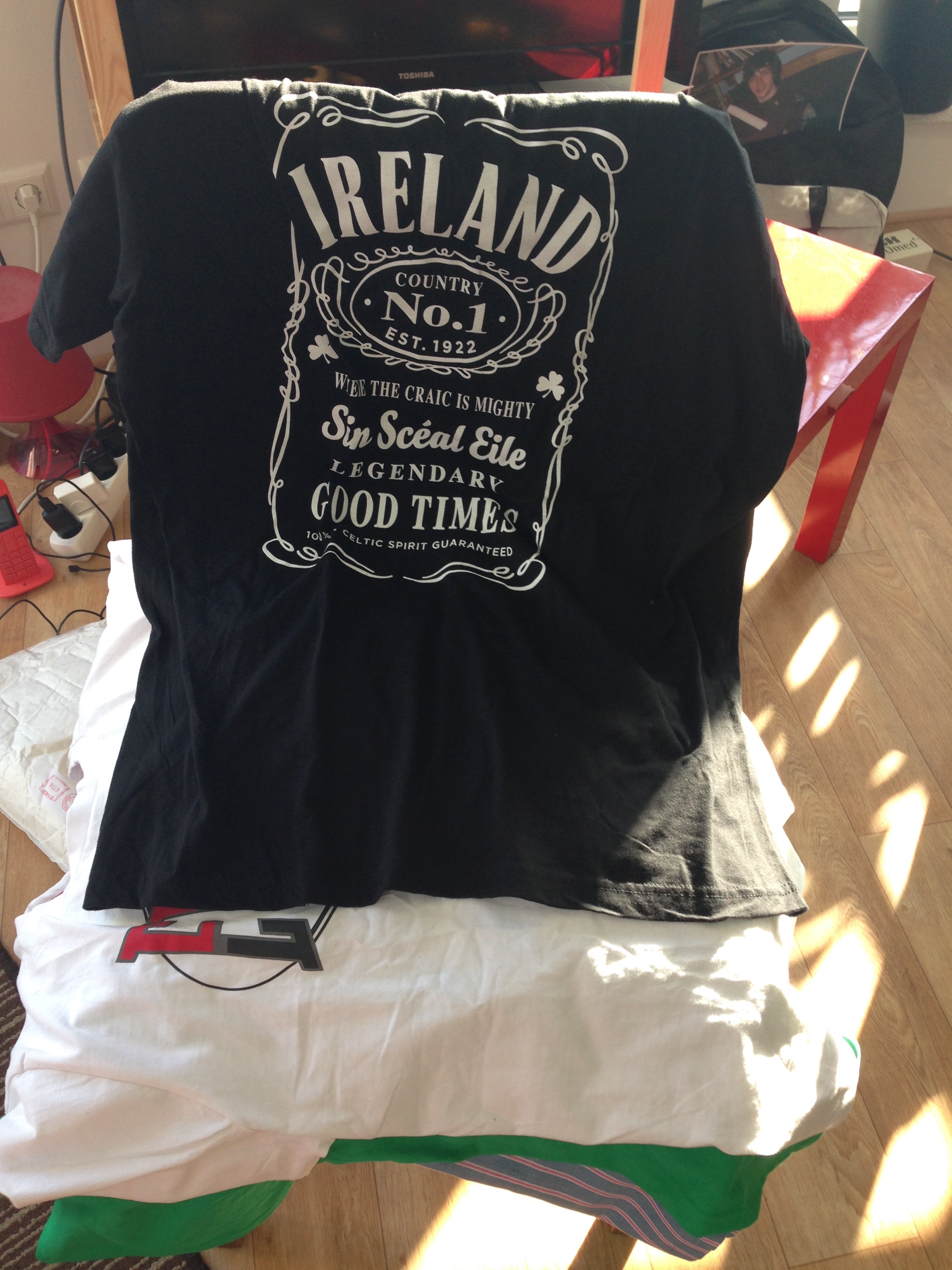 Yesterday, a package arrived with loads of t-shirts and shorts for the summer, especially tailored for Pádraig. There are friends of us who are in the clothing business (I think) and they had this idea to adapt really nice clothes for Pádraig by cutting them open at the back or the side and then adding velcro – that way, we don’t have to pull t-shirts, for example, over Pádraig’s head. It was so nice to receive that package, together with a lovely card! – It would be worth patenting the idea!!!