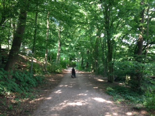 It was an absolutely beautiful afternoon. The temperature outside was just right. The sun was shining. There was a light, warm wind blowing. The path through the park was just perfect. Pádraig really enjoyed this, though he was completely exhausted. This was as good as it gets.