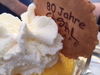 We had an ice-cream in an Italian ice-cream parlour that this year celebrates its 80th anniversary. Imagine, they opened in 1935. Imagine what Germany, even Pforzheim was like then. Germany was getting ready for war. The nazis were in power and, in effect, extinguished culture, imposing a regimen of barbarity for which it is difficult to find a match in history. And this in the country of Goethe, Schiller, Beethoven, Schubert, Heine, Brecht…