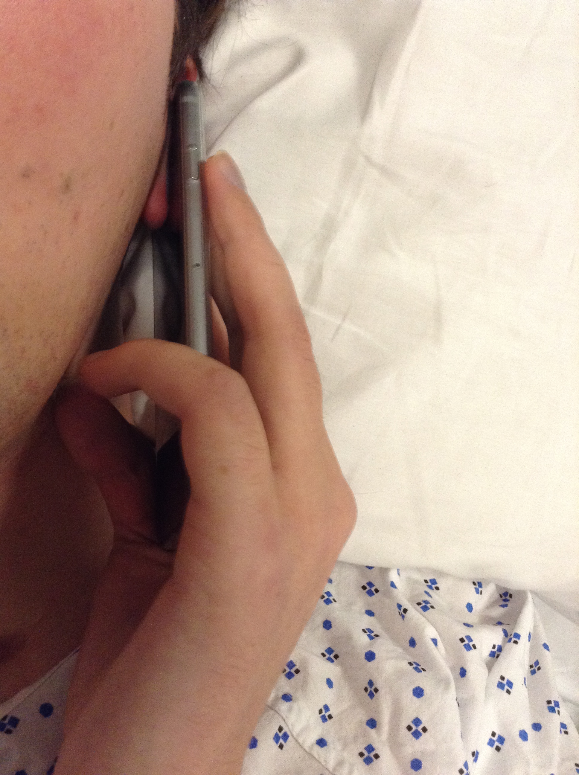 He has been taking calls for a long time. Not “Germany calling” but “Calling Germany”. (An interesting one for linguists: how word order can change the meaning dramatically:) He is not talking yet, but there is an attentive expression in his face, there are mouth movements, and there is, at times, a reluctance to give the phone back.