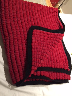 Pádraig got a really really lovely present today. Maria brought it in: a hand knit blanket , so nice, so exactly the right size, it must have taken weeks to make this. In ‘rojo y negro’ (the colours of our favourite hangout in Salamanca:).