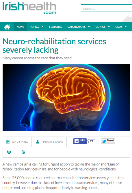 ~ Acquired Brain Injury (ABI): from the acute hospital to early rehabilitation – more on: www.CaringforPadraig.org and www.ansaol.ie