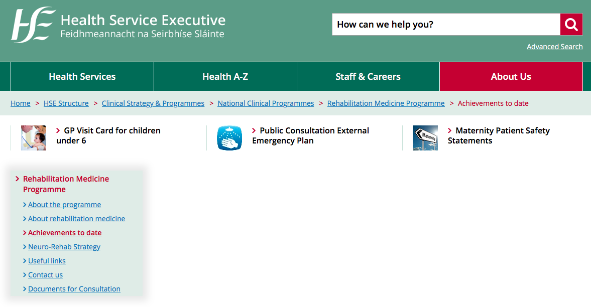 ~ Acquired Brain Injury (ABI): from the acute hospital to early rehabilitation – more on: www.CaringforPadraig.org and www.ansaol.ie