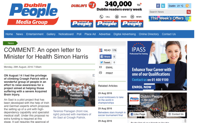 ~ Acquired Brain Injury (ABI): from the acute hospital to early rehabilitation – more on: www.CaringforPadraig.org and www.ansaol.ie