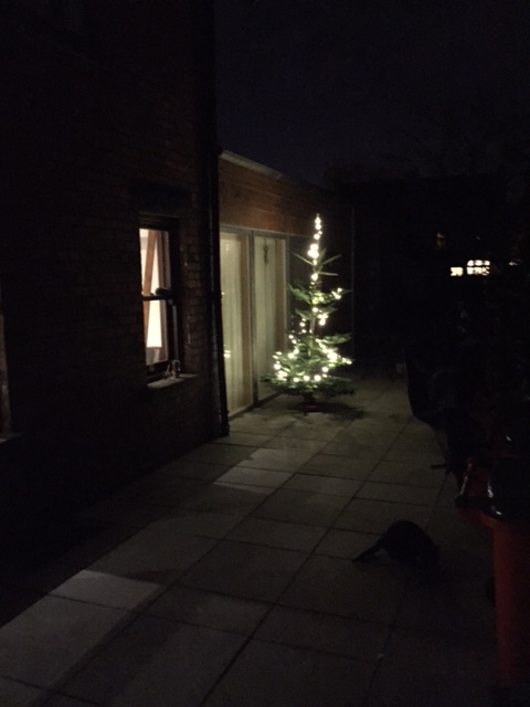 We’re ready. This year, we’ve one christmas tree in the living room, we have lights on a really skinny birch tree in the front garden, and we have another christmas tree right out in front of Pádraig’s window in the back garden. It’s not huge, but it’s respectable enough.