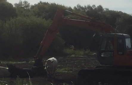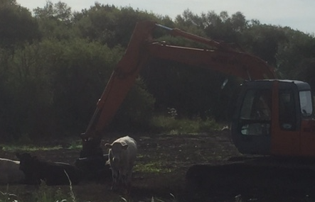 It was a huge field. Which means they had choices. But they sat right in front and underneath this digger. – We witnessed this rather unusual cow solidarity movement this morning on our walk to Cloone in lovely Leitrim.They had decided, they were not going to move, they would not allow this digger to destroy their lovely field. They probably knew they wouldn’t stand a chance, really. But they did it anyway. Nobody was watching, there were no witnesses (apart from us), they couldn’t mobilise other cow friends in other fields, the fences were too high. – Cows with principles.