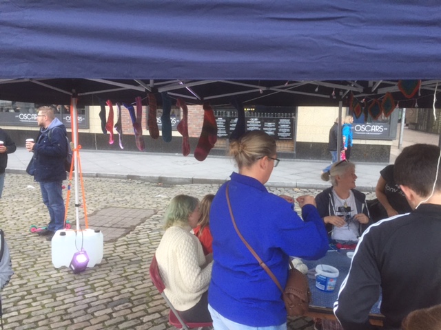 i’d never thought I’d see the day that a group of people sat outside under a marquee in Dublin’s city centre – knitting socks. That’s a German thing. Not an Irish thing. Definitely not.