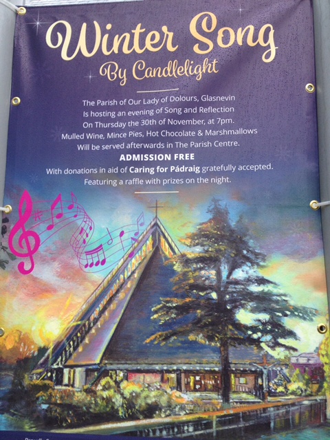 Our neighbouring parish decided this year to organise a raffle at their annual Winter Songs by Candlelight to support “Caring for Pádraig” which is so incredibly generous that I honestly do not know what to say… It’s the Parish where we got married a few years ago and it will be a great honour to join the Parish on that evening for what, no doubt, will be a brilliant night of song and good company.
