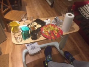 This is Pádraig’s table after they had left tonight. Some paella from Juan’s famous Spanish kitchen takeaway, vino, Coronas, minced pies – after all it’s still Christmas!