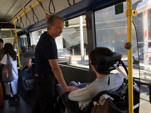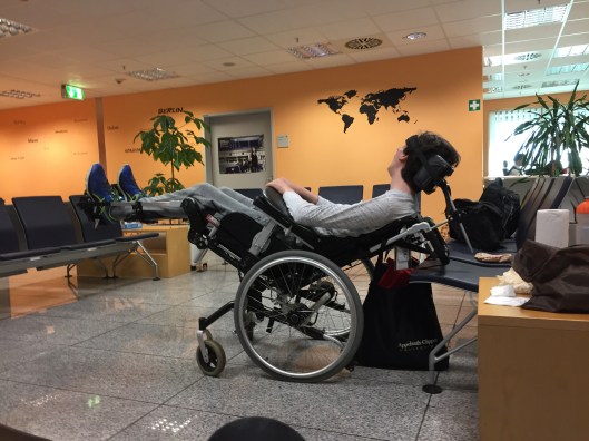 We’re sitting in a mobility lounge. And wait.
