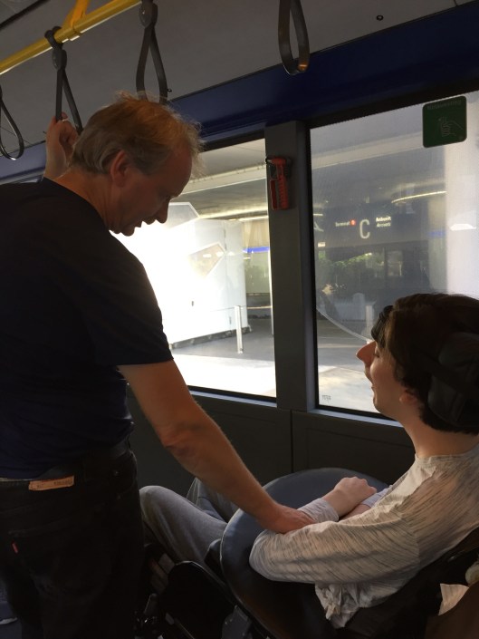 Terrible discussions about getting the seats we had booked previously in row 1. We wanted them because there’s more room for 6’7″ Pádraig . The man at the checkin didn’t want to give it to us for reasons I don’t understand. Eventually, he allowed Pádraig to sit by himself in a window seat in row one, kept the middle seat free, and put us in the two aisle seats of row one. Mmhhh…