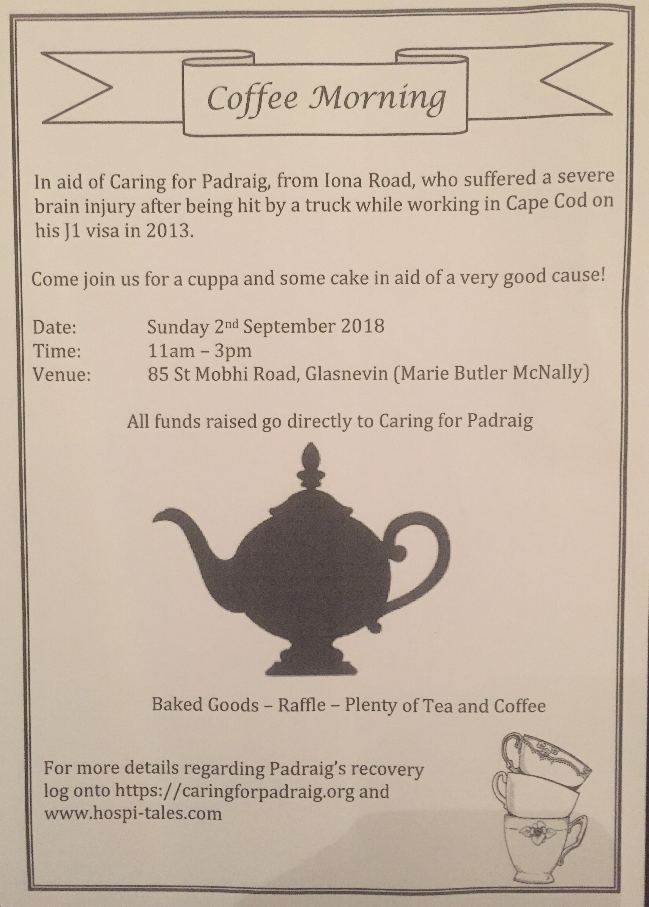 The summer is almost over. School is about to start again. It’s time for the annual Coffee Morning organised by one of Pádraig’s best friend and her family. Please join us and spread the word!