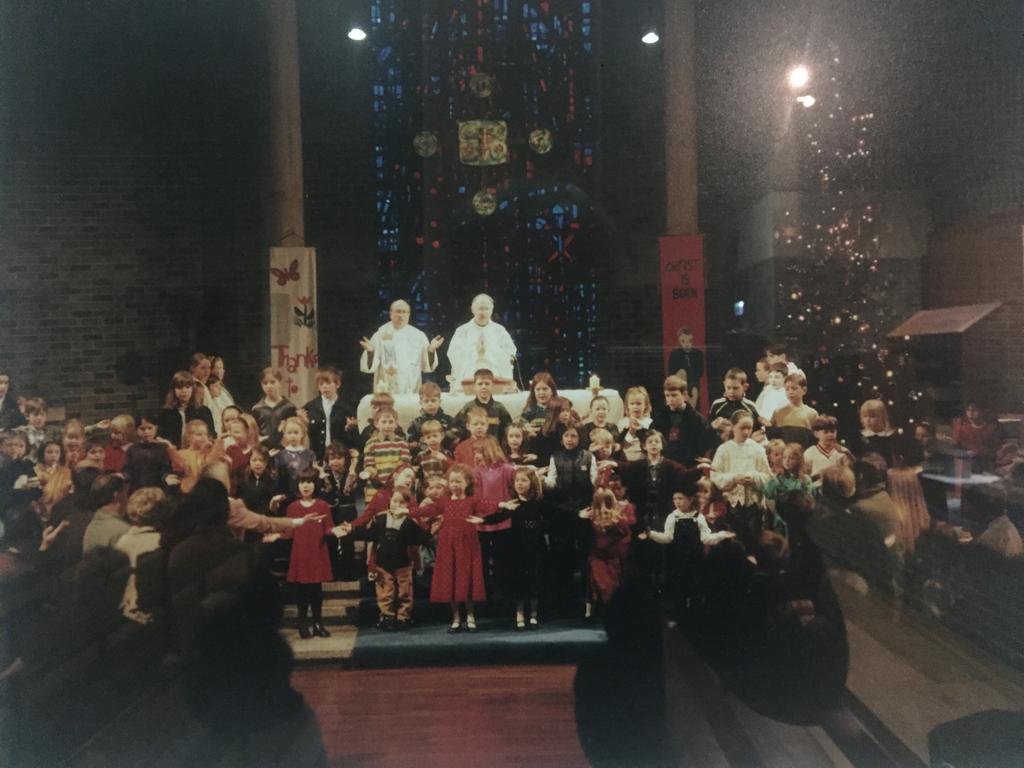 While we were there we noticed a couple of photographs. They must have been taken during Sunday Mass, maybe some 20 year when the priest gathered the kids around him and talked to them for a while.