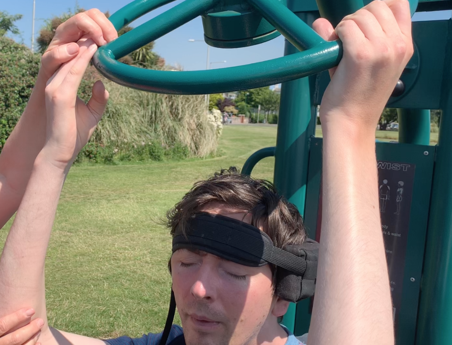 There are other possibilities to exercise. Some are all around us. We just need to keep our eyes open and grasp the opportunity when it arises. This morning, we went for a walk along the seafront and discovered several exercise gadgets set up there by Dublin Corporation for people in wheelchairs.