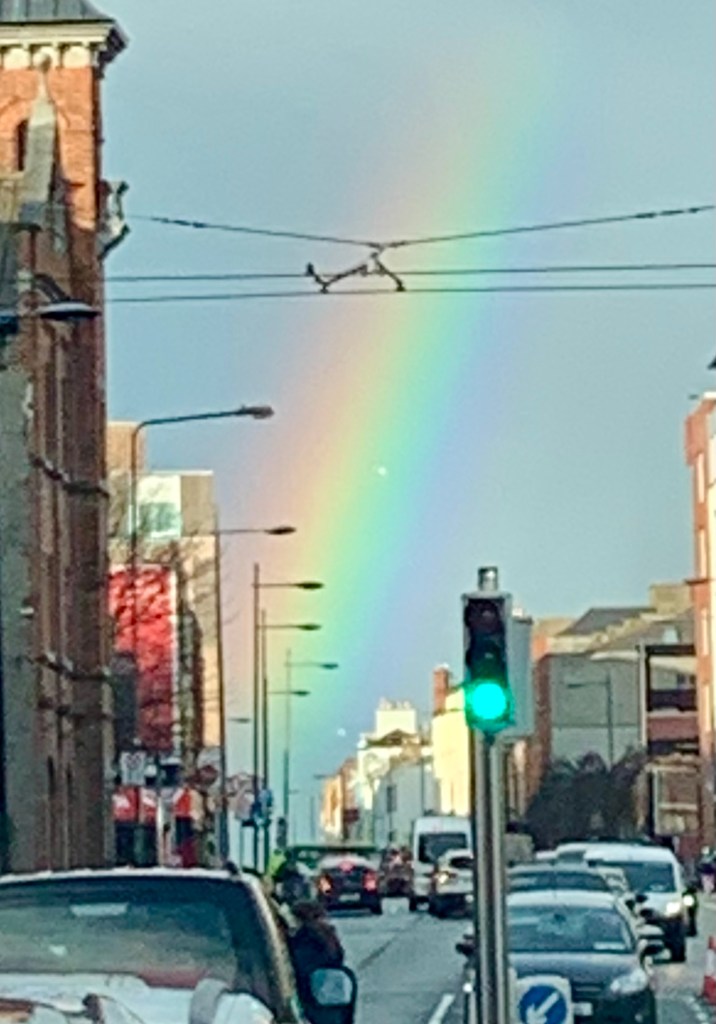 We saw this rainbow when we were driving home, up Drumcondra Road. And while I wouldn’t dream of correcting Dolly, this time it didn’t even rain. It was just beautiful.