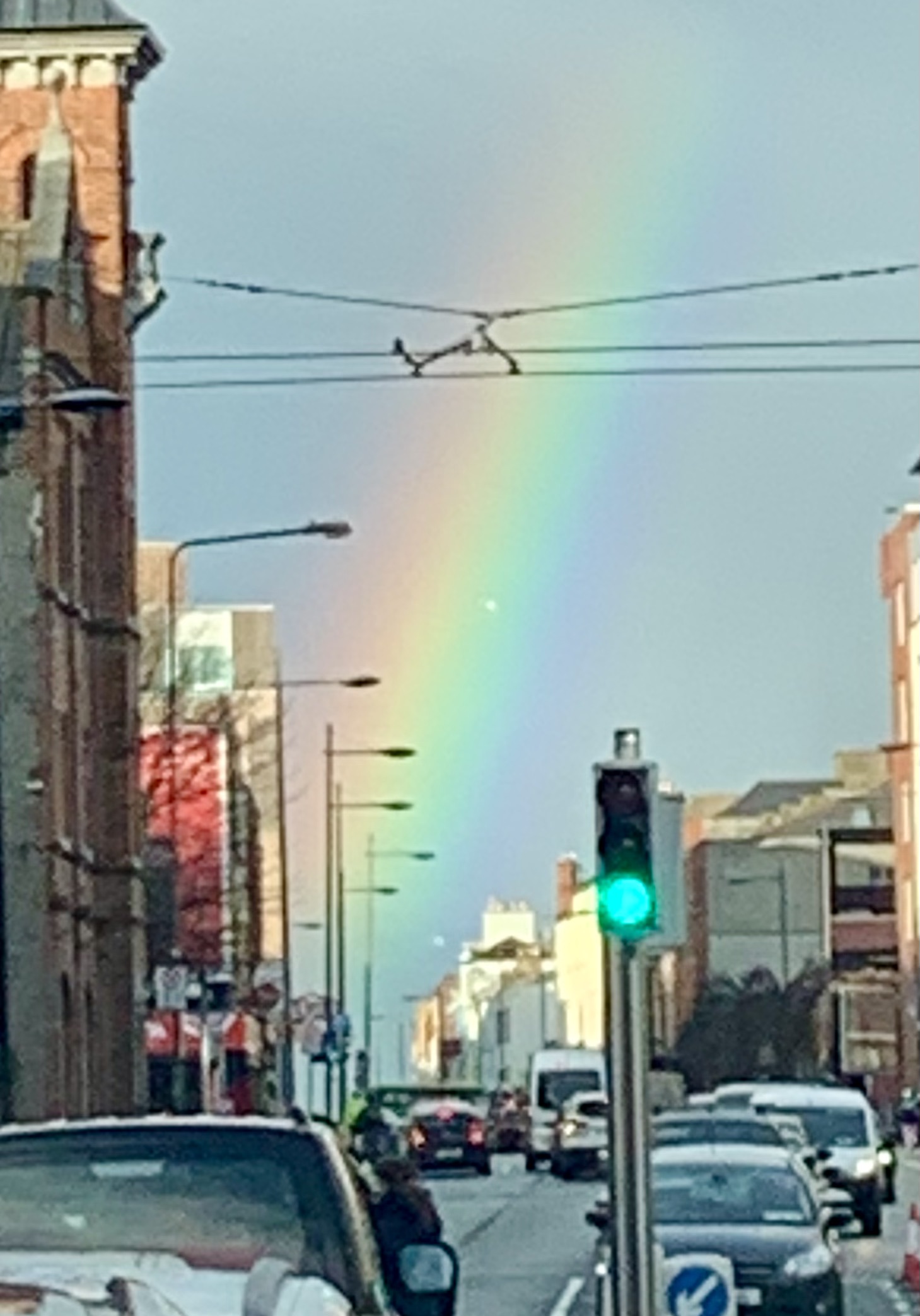 We saw this rainbow when we were driving home, up Drumcondra Road. And while I wouldn’t dream of correcting Dolly, this time it didn’t even rain. It was just beautiful.