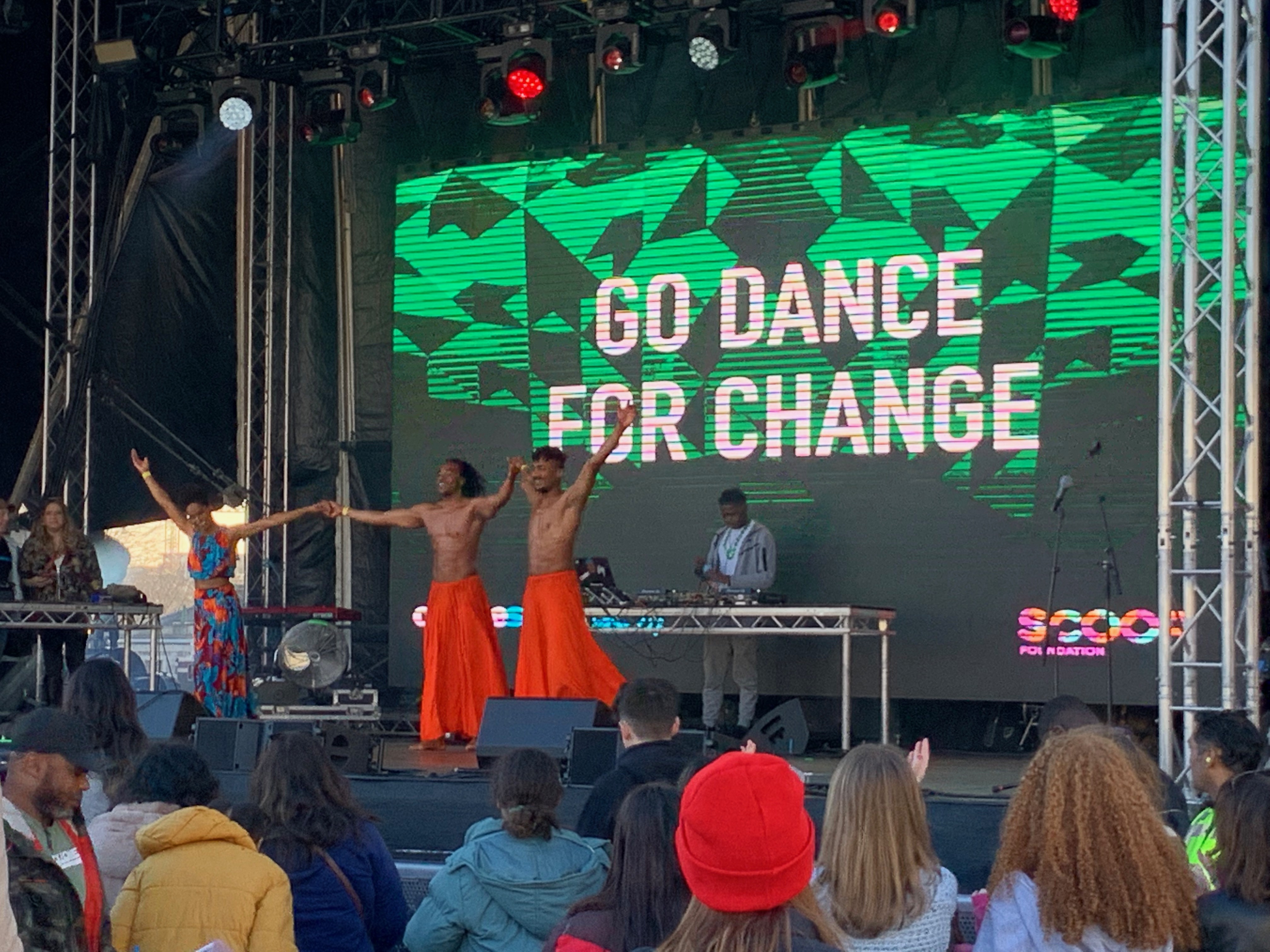 The weather was fabulous and there were lots of people in the place. There was a group of really good dancers on the stage – Go Dance For Change -, two DJs were doing a night’s work in the middle of the day, and about two dozen food trucks sold burgers, waffles, and bratwurst dressed up as ‘hot dogs’.