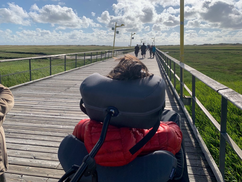 Our first long walk was out to the ‘Arche Noah’, about a mile off the coast across a wooden bridge onto a giant sand bank. Sand a far as you can see. I know this place since I was 15 or 16, spent most of my summers working here with others, and with my sister and her husband who lived here.