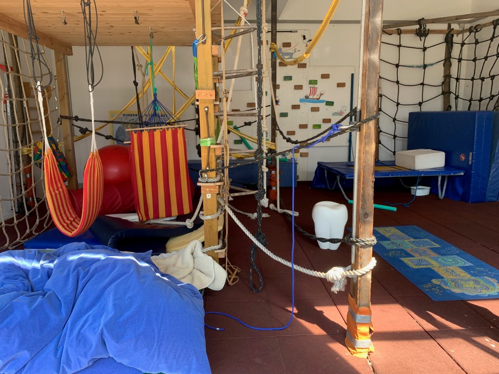 With a little help from our friend, he found a great OT who has seen him a few times last week. She has a a practice that must have taken decades to develop. The initial ‘assessment’ consisted in a trial and error session which we assisted. On the way out one day, she showed us her huge garage which she had converted into a giant activity space.