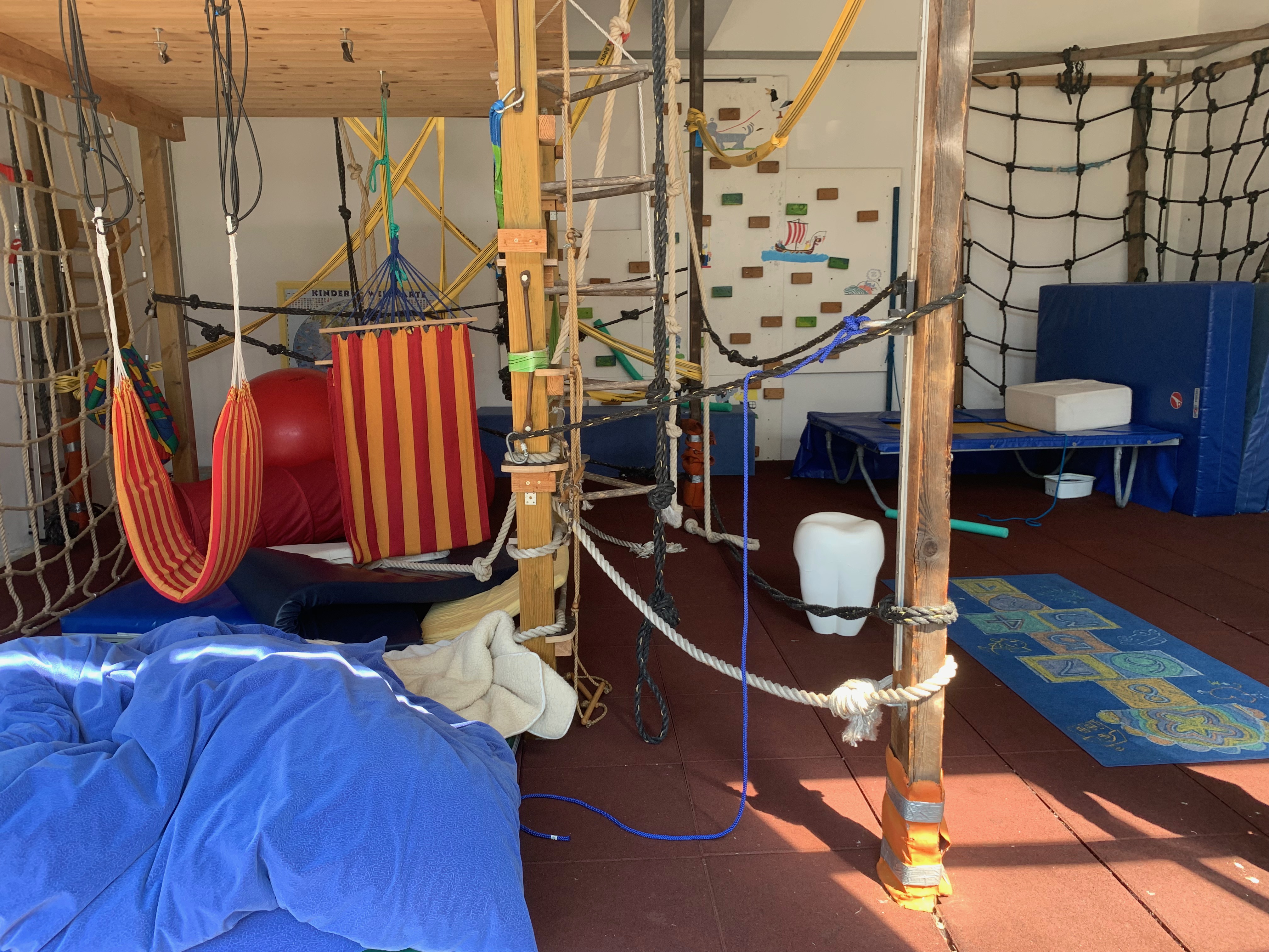 With a little help from our friend, he found a great OT who has seen him a few times last week. She has a a practice that must have taken decades to develop. The initial ‘assessment’ consisted in a trial and error session which we assisted. On the way out one day, she showed us her huge garage which she had converted into a giant activity space.