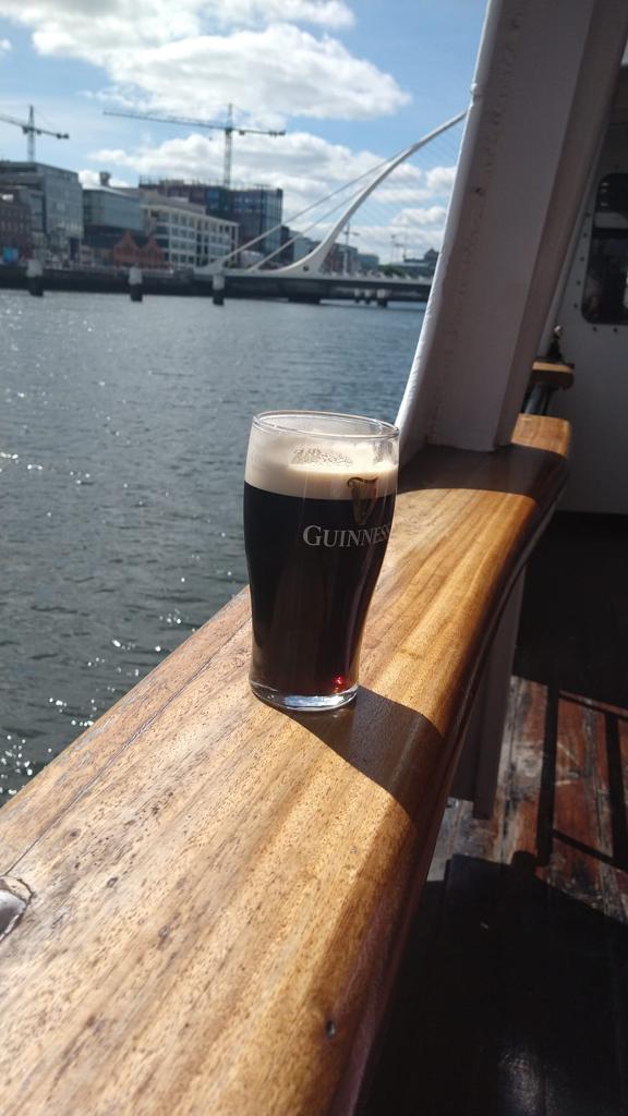 Last week started with day two of Pádraig’s friends’ wedding celebrations. It was another fabulous day of Ireland’s week-long summer. The couple had organised a section of a boat on the Liffey which presented itself in glorious sunshine. The pints looked like straight from a Guinness add. The famous two red & white chimneys of the pigeon house in the background matched those on Pádraig’s sweatshirt. Many of the dreamboaters were around. A perfect day.