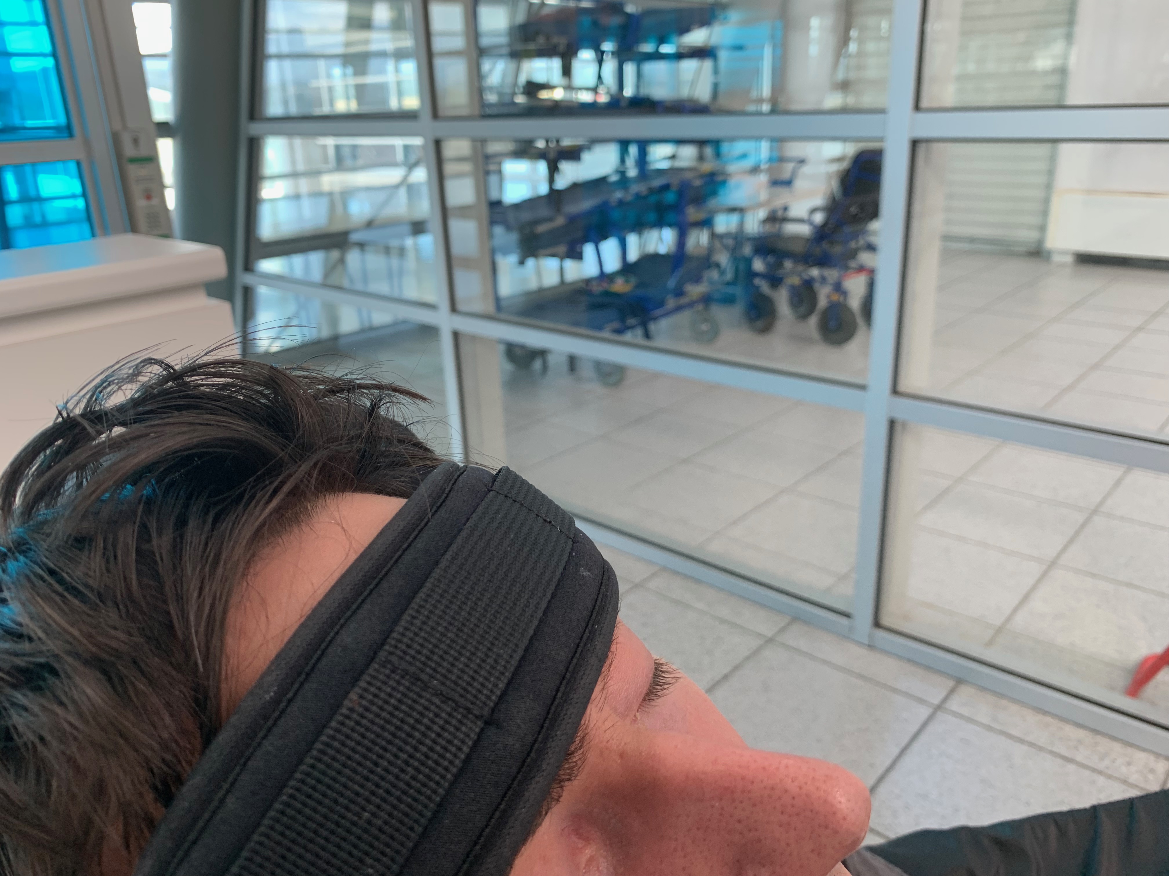 Pádraig also got a new neck and head support which can be adjusted by adding or extracting air. I tried it out myself and it really works very well. Pádraig put it on for his Lokomat sessions and is very happy with it.