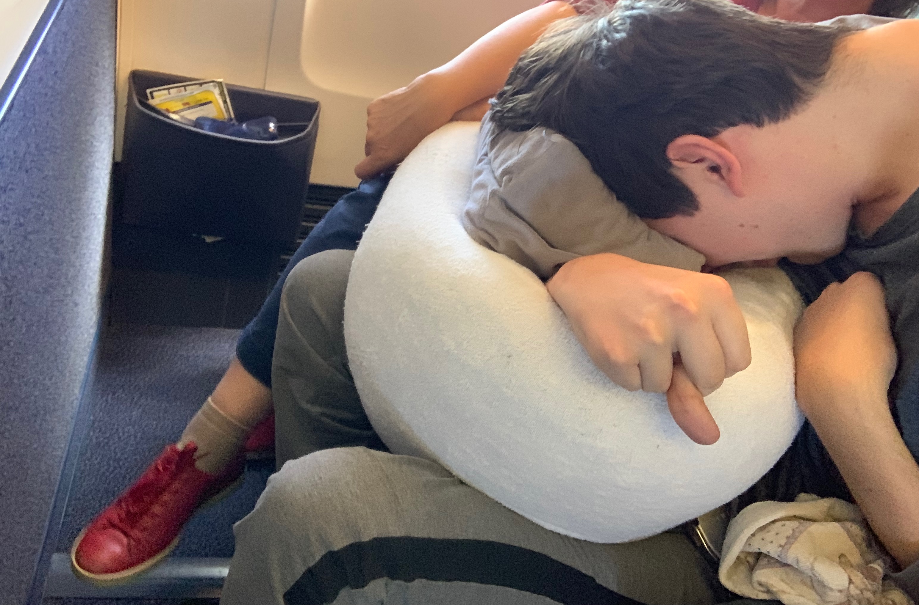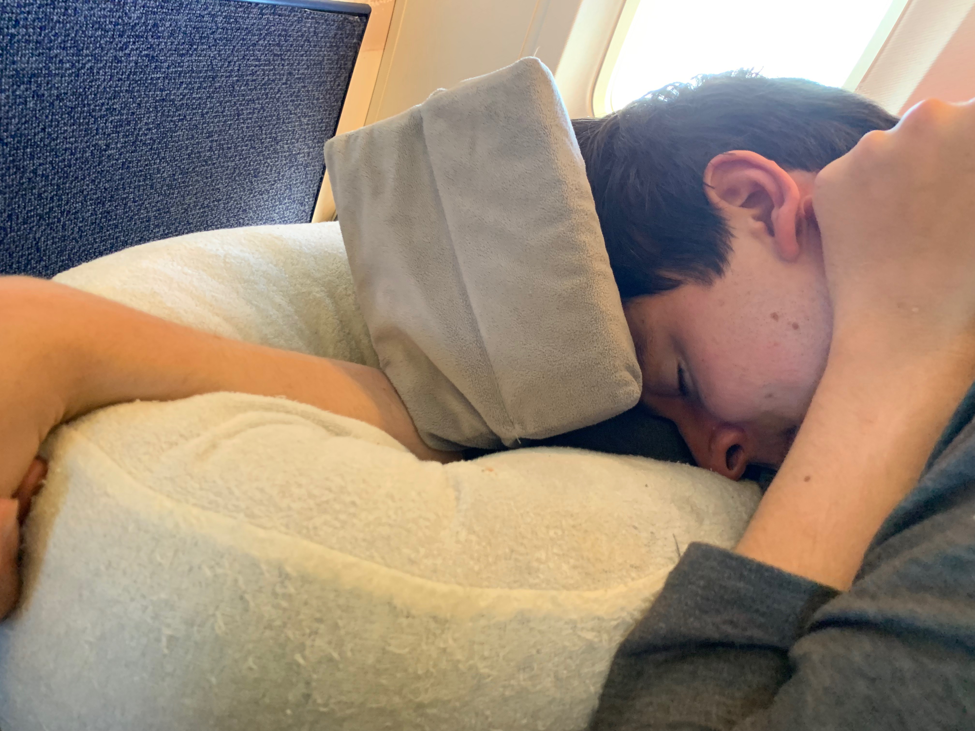 The way back from Lourdes last Monday was a bit stressful. Someone, Ryanair or the travel agency, had decided, without even telling us, to move us from the seats we had purchased (2d, 2e, 2f), because they have extra legroom which Pádraig needs, to seats in the same row (2a, 2b, 2c), but without the extra legroom. Nobody managed to sort this out until we were on the plane and three very kind passengers agreed to move across the row. Pádraig got the extra leg room and had a good flight back home.