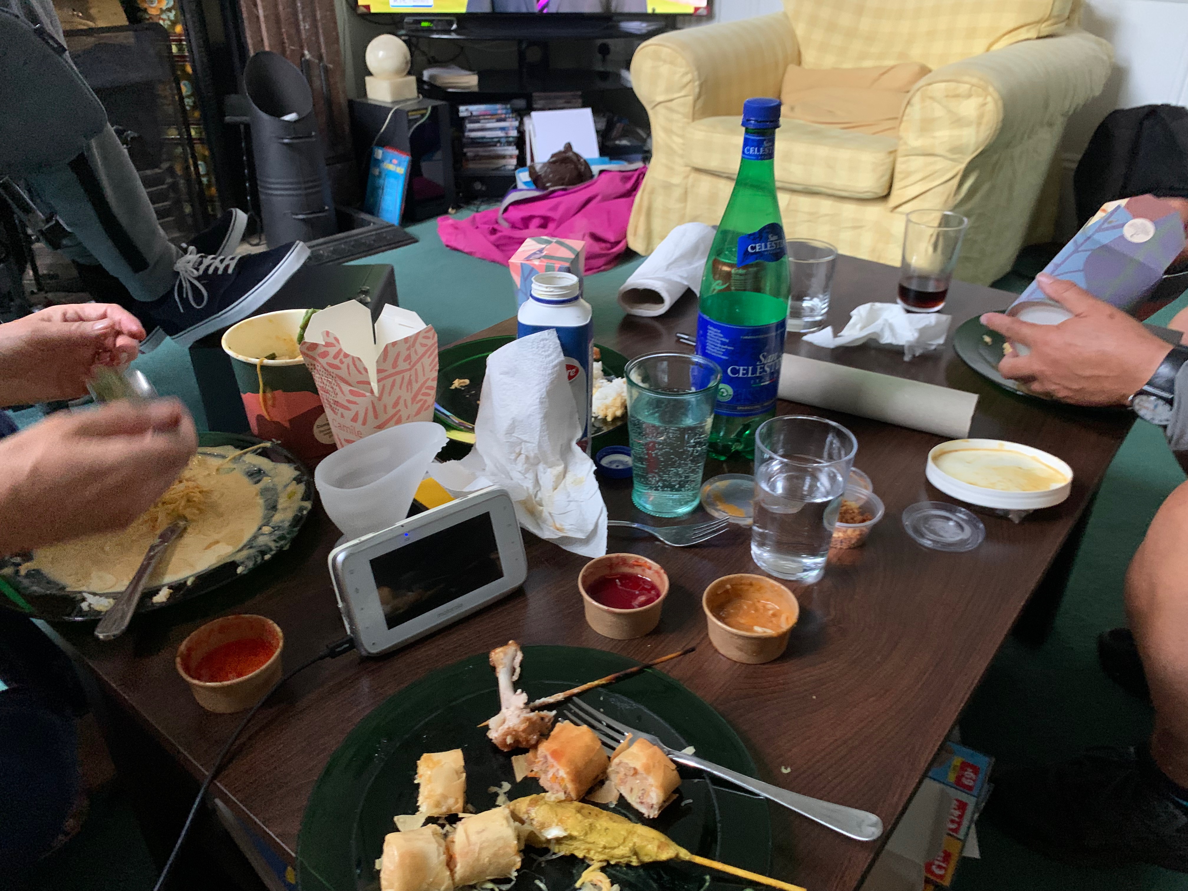 To celebrate, we had a great Thai take-away in the sitting room with very different tastes to our own home cooking.