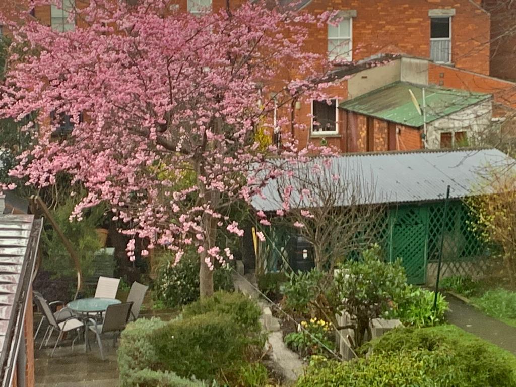 Now, anybody who comes to visit us, suggests to leave things as they are. The two gardens look fantastic without that wall separating them. The additional light our house is getting is spectacular. And while the weather hasn’t really been that great, the cherry tree in our garden doesn’t care. He is blooming as if there were no more freezing nights and dark, dull mornings.