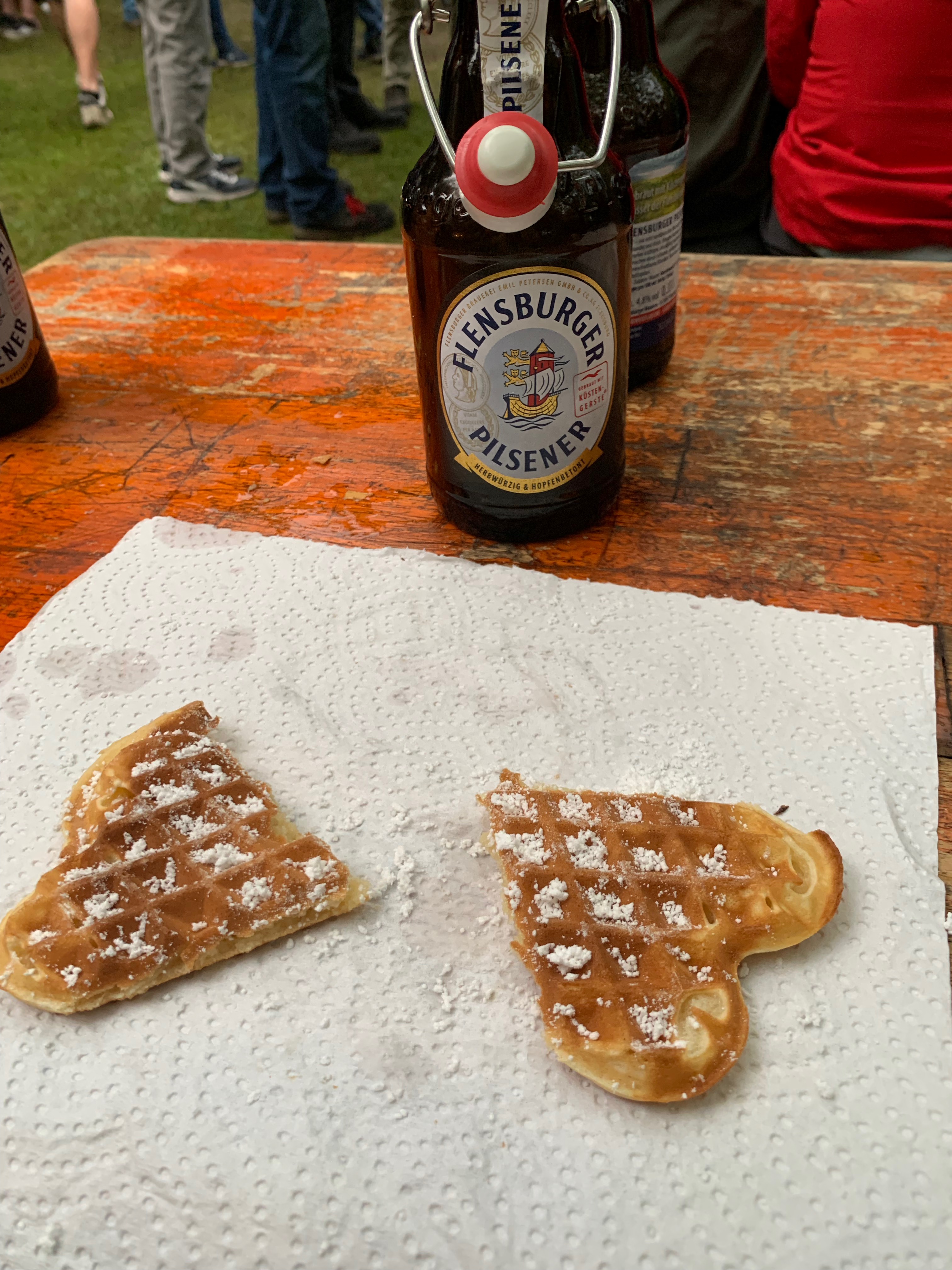 Pádraig went to what was almost like a mini Wacken, the world’s biggest Heavy Metal open air, which takes place over the first week(end) of August every year in a tiny village less than an hour from Tating, usually in fields of mud. Tating’s Dorffest was slightly less heavy metal but equally muddy. The music was brilliant, though not necessarily everybody’s taste, the food and the drinks were of the finest quality, Futjes, Bratwurst and Flensburger, and the company was unique.