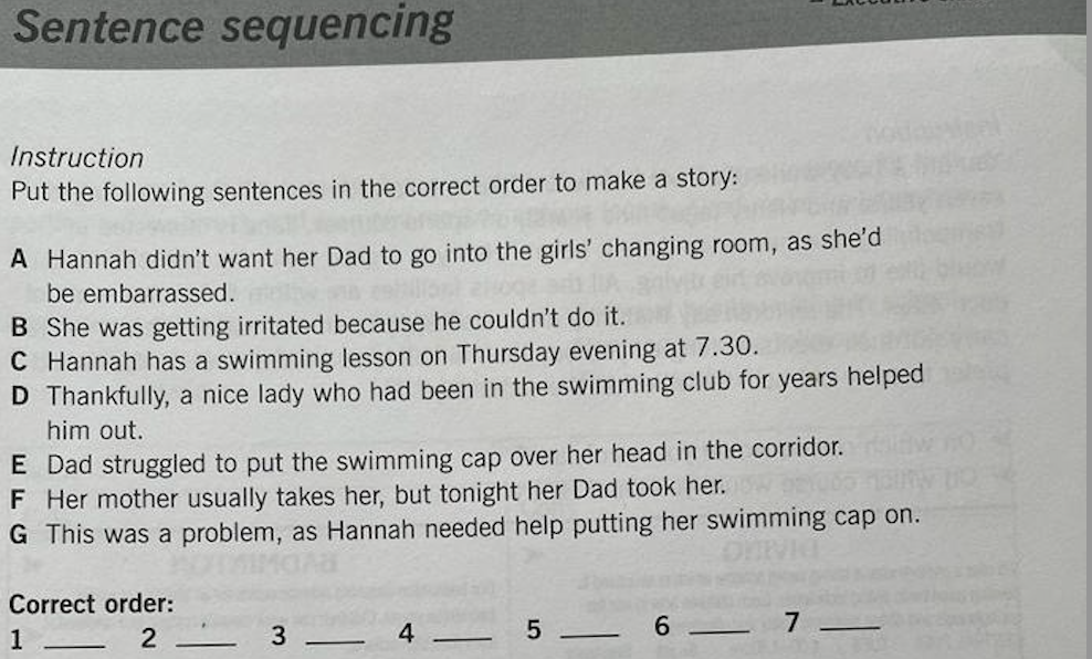The task was putting these six sentences into the right order. To be honest, it took me a while to get this right. There were a lot of different steps to go through. Reading, re-reading, remembering, checking and double-checking. Final check. Pádraig got it right.