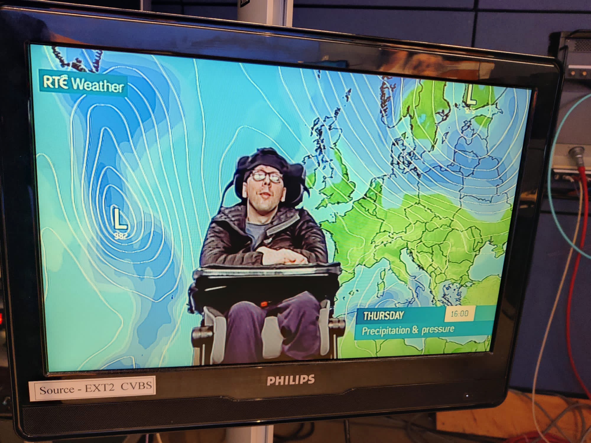 The highlight of his visit, however, was the weather forecaster studio with its blue screen and screen overlays, including the famous isel bars and all. The weather forecasgter on duty couldn’t have been nicer.