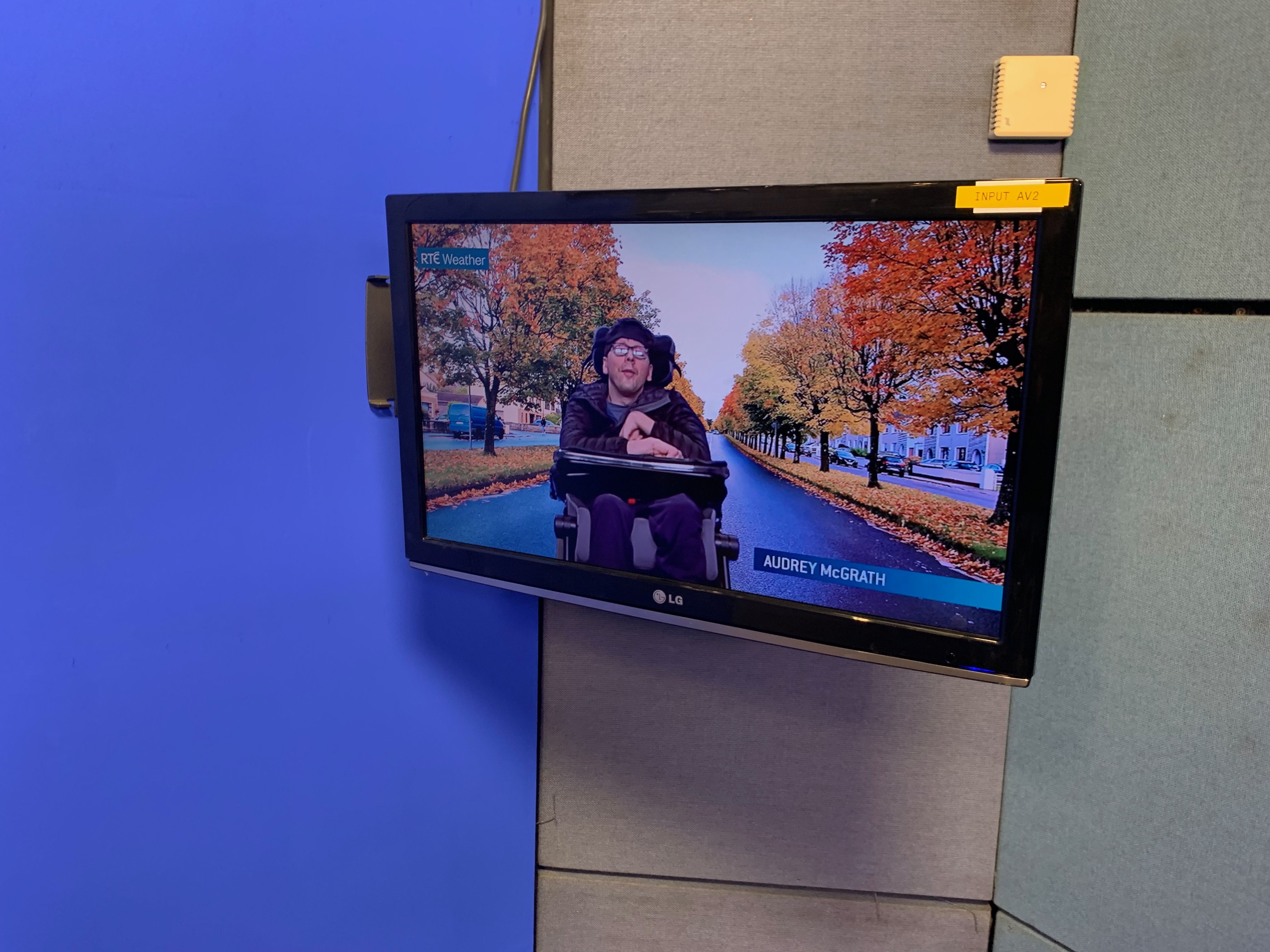 Pádraig went into the control rooms of Ireland’s two official TV channels and saw his sister’s pretty small studio where she works as a continuity presenter – including the red button she uses to interrupt whatever is being transmitted at the time to give an overview of the upcoming programmes to the nation. Imagine.
