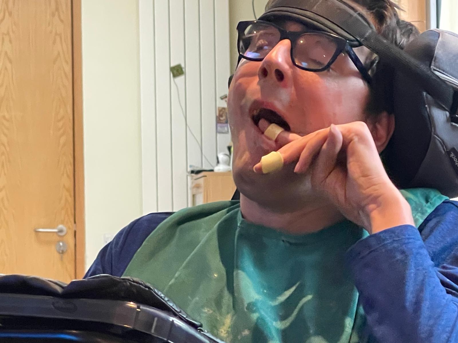 Many people who see Pádraig for the first time think he is asleep because damage to his third nerve makes it hard for him to keep his eyes open. But everything changes when something really interesting is happening. And this is without his ptosis-glasses helping him to lift his eyelids.