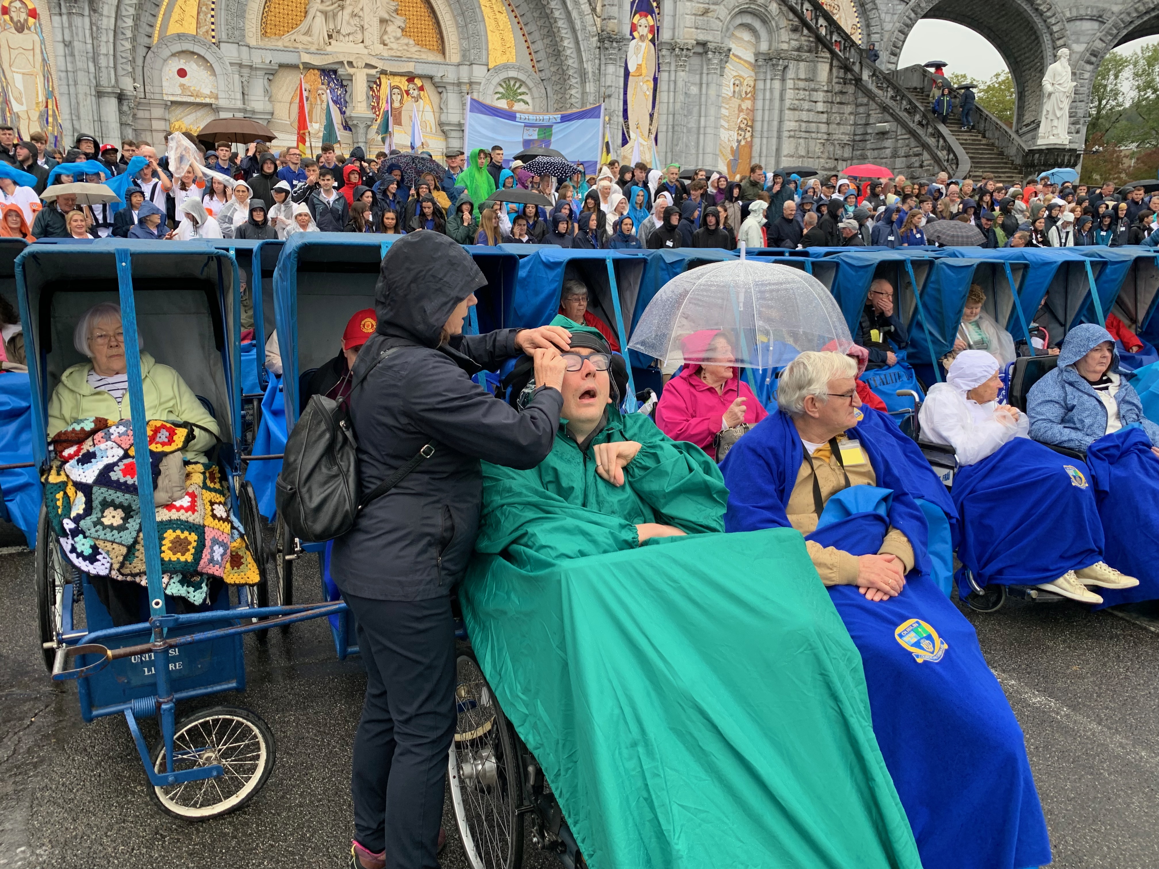 Miracles are happening before our eyes all the time but we do not see.. From the moment I stood on the steps of the church in Trinity College in July 2013,after a mass (for healing and support intentions for Pádraig and family) I uttered words to a college friend of Pádraig s … Pádraig is a miracle in progress… and here you are today Pádraig showing how life can be lived despite all the horrendous obstacles.. with the love and support of family.. Amen to that.. Enjoy Lourdes, I head there on 25 th with CASA , Caring and Sharing Association.. 🙏🏻