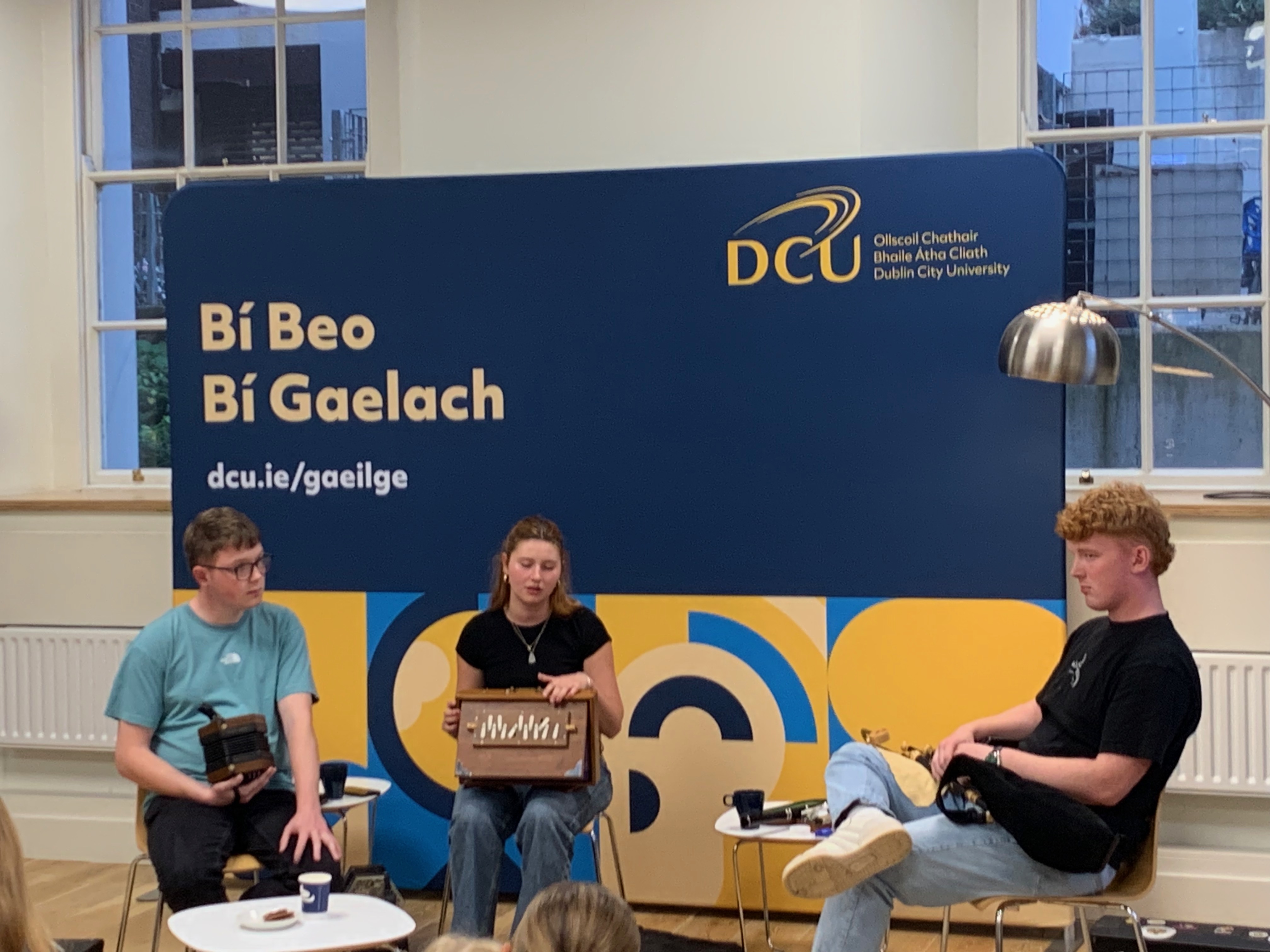 We went to St. Pat’s College, now part of Dublin City University, DCU. We saw DCU’s president, Daire Keogh, the Artane Band passed in front of us, and – above all – we went to the Seomra Caidrimh where students played the most amazing Irish music.