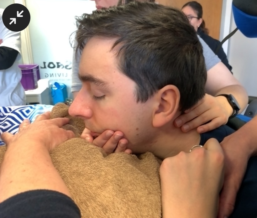 Pádraig continued his online sessions with Kay Coombes of ARCOS and Facial Oral Tract Therapy (F.O.T.T.) fame. It is amazing what can be done over a distance of hundreds of kilometres. In fact, any distance, using technology that people only talked about during COVID and that has now nearly become part of every-day life. I am not aware how widely it is being used to deliver therapy. In Pádraig’s case, he has benefitted enormously from Kay’s incredible knowledge and experience. As the sessions are being recorded, even people not present can pick up ideas and learn by reviewing them.