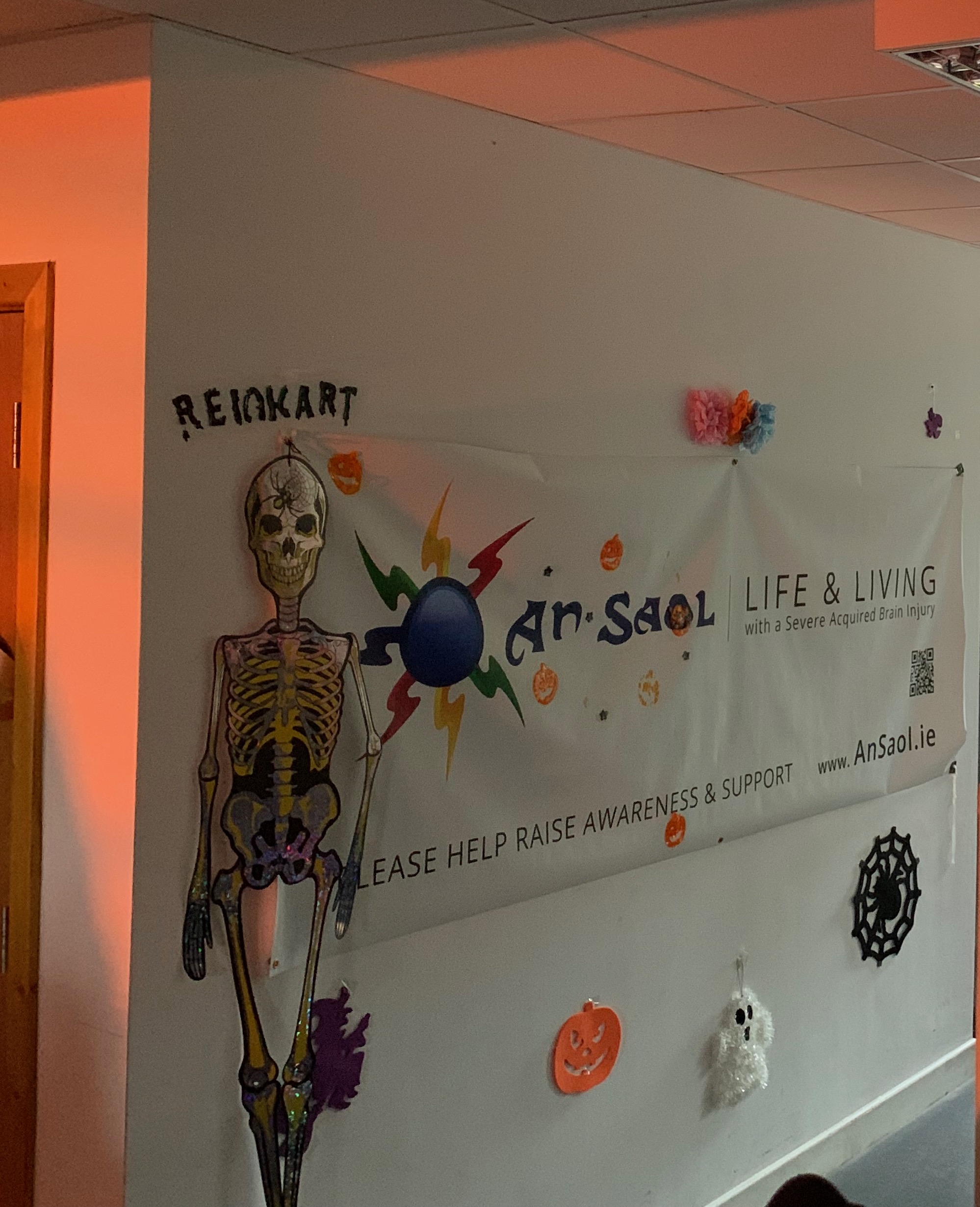 During the week, we celebrated Samhain or Halloween in An Saol. Pumpkin cutting. Costumes. Skeletons. Scary sounds and all. There were witches, Rocky the boxer, ghosts, doctors ready to emigrated to Australia, famous sports people, and the ever-present Mexican.