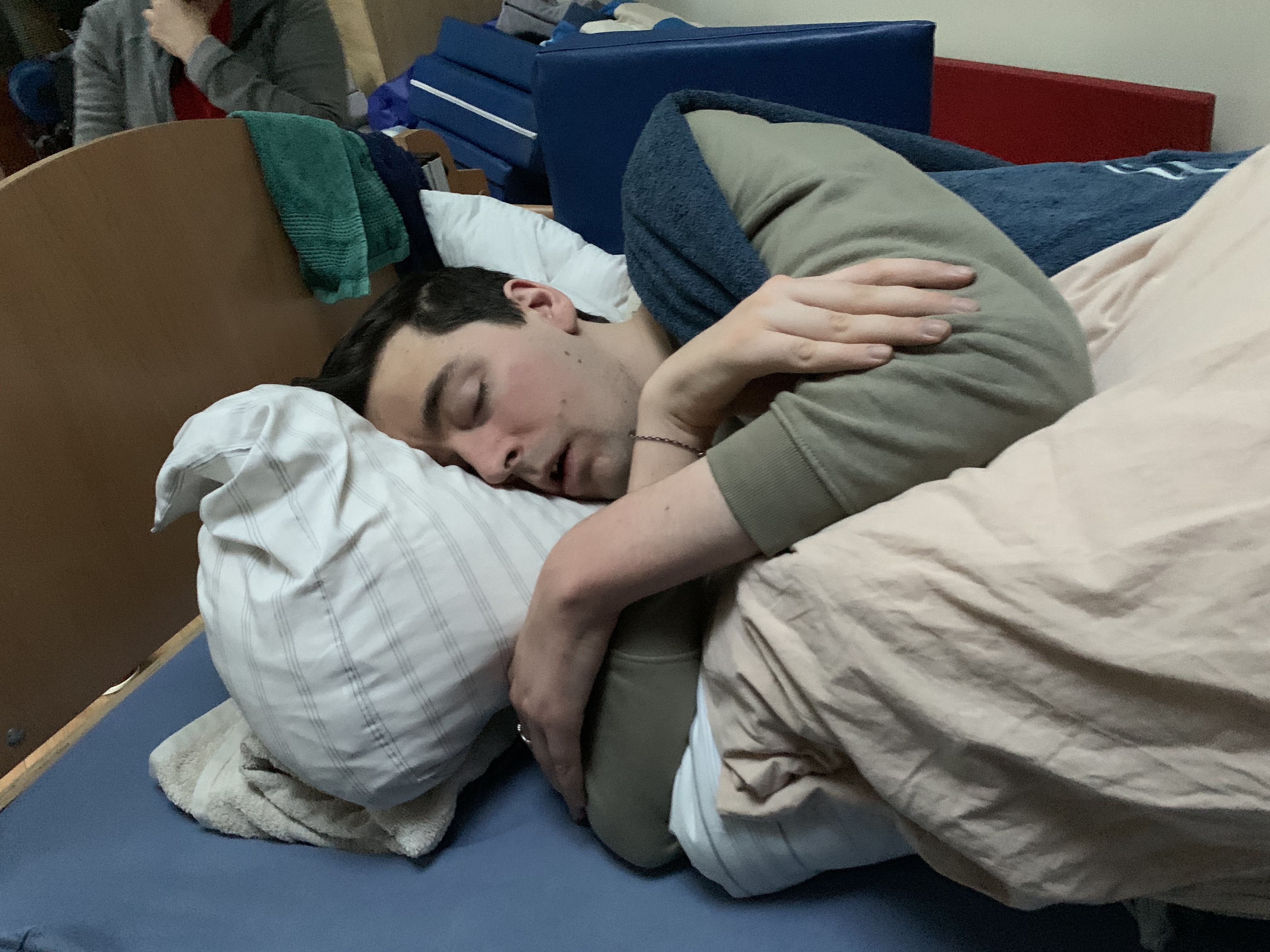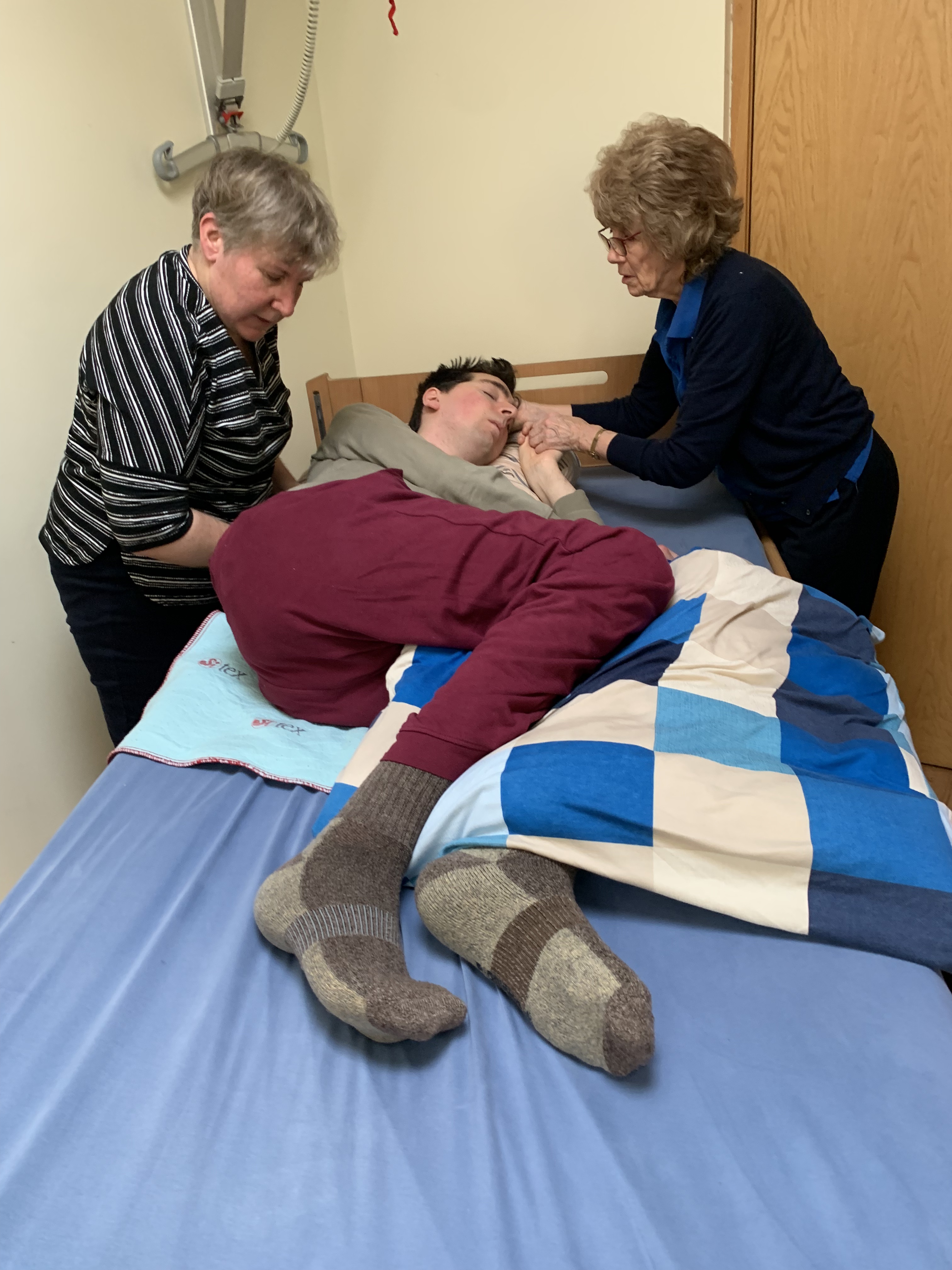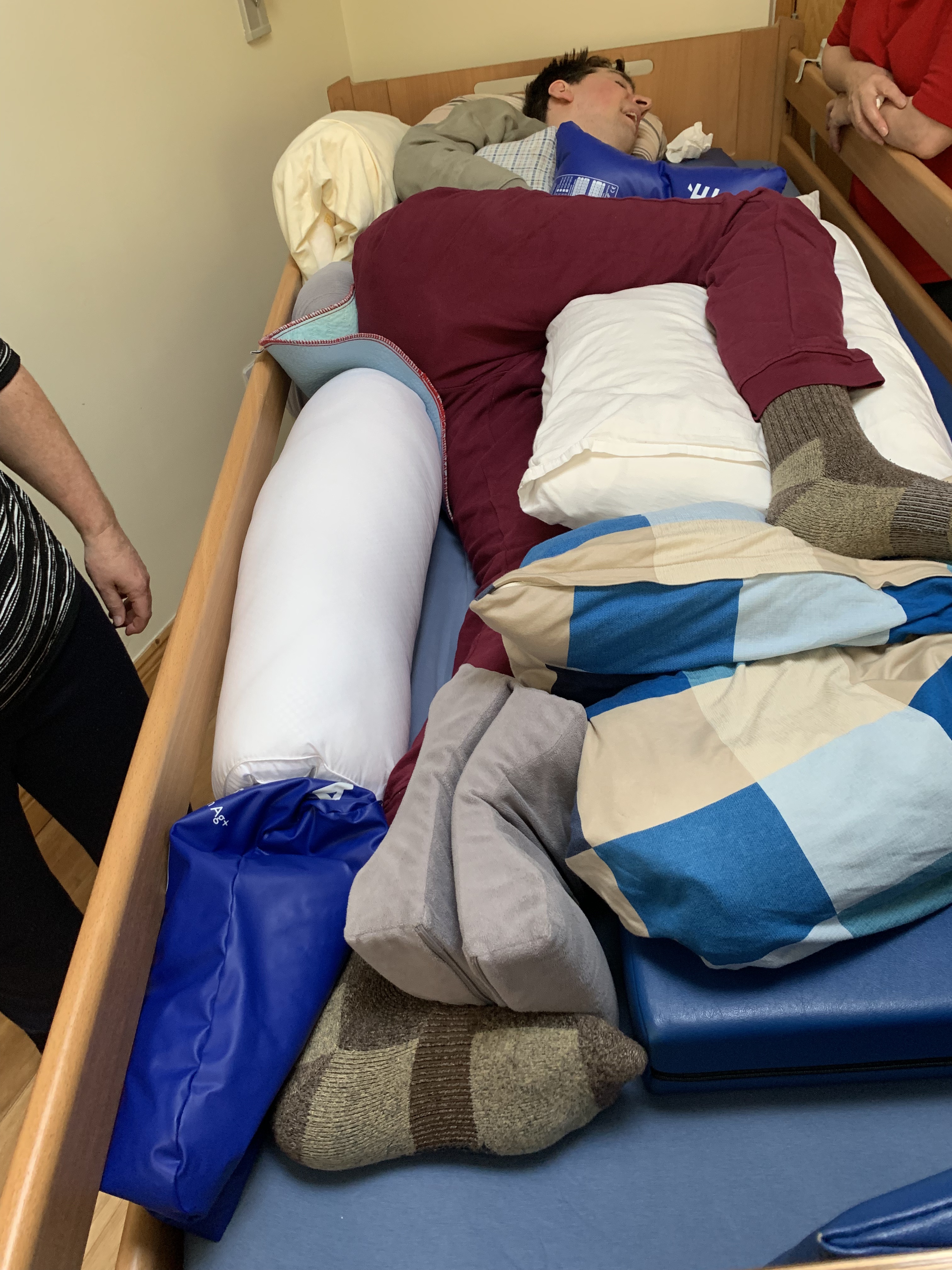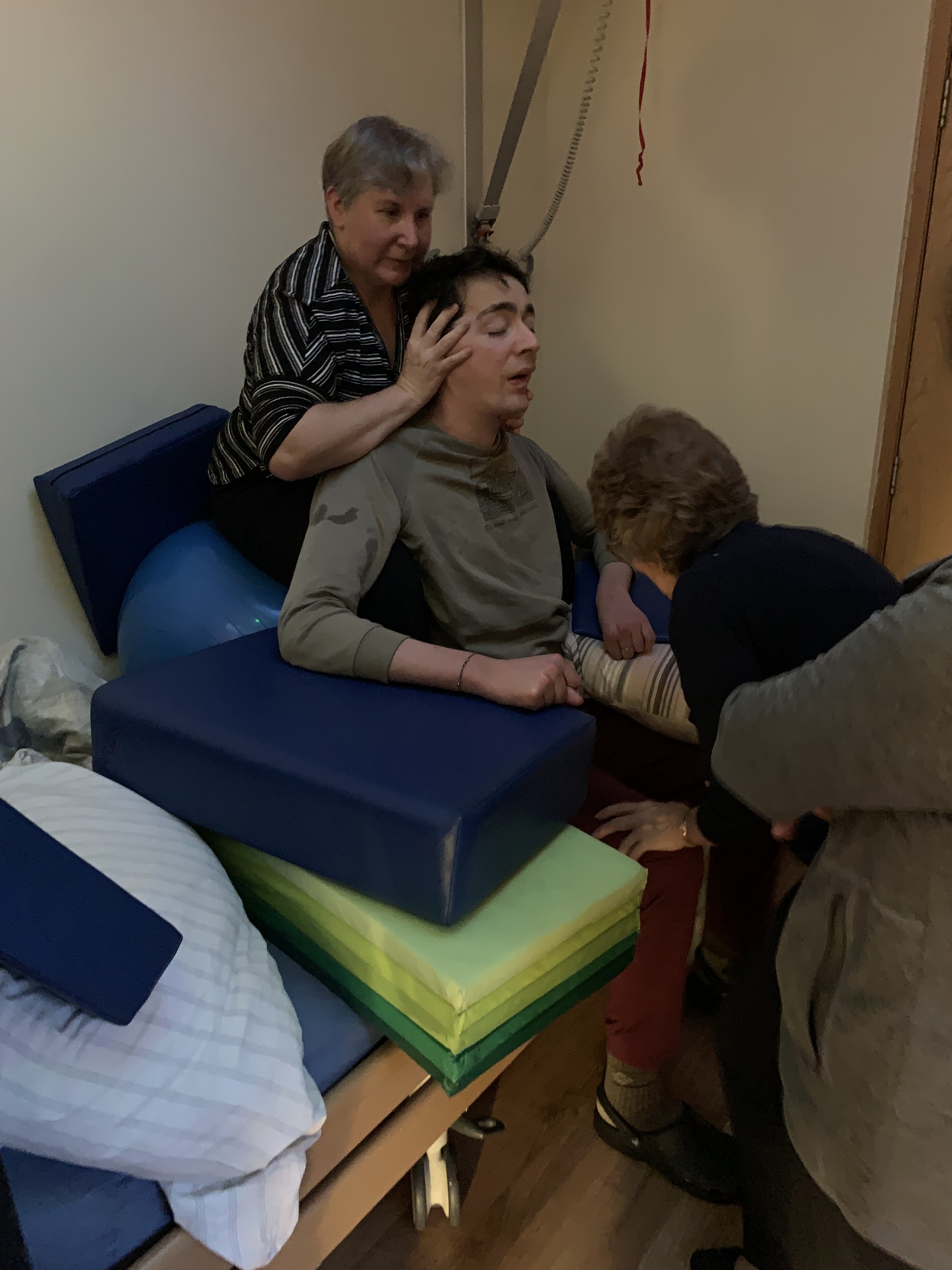 The weekend with them reminded me, if that was necessary, how much we need to learn about some of the most fundamental aspects of a severe brain injury. Although it was not for the first time that we heard about the importance of positioning, be it in the bed, in the chair, or when standing – but it is only now beginning to sink in. If you are sitting doubled over or holding your head in the wrong position, you don’t breathe properly, and your voice production suffers.
